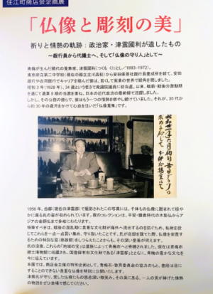 住江町商店会は津雲國利が魅了された仏像と伎楽面などの彫刻を展示いたします。